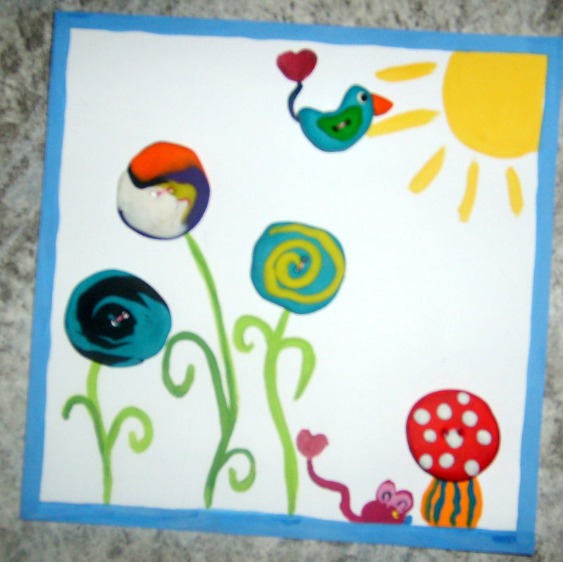 et une carte fait-maison avec des boutons en pâte Fimo!